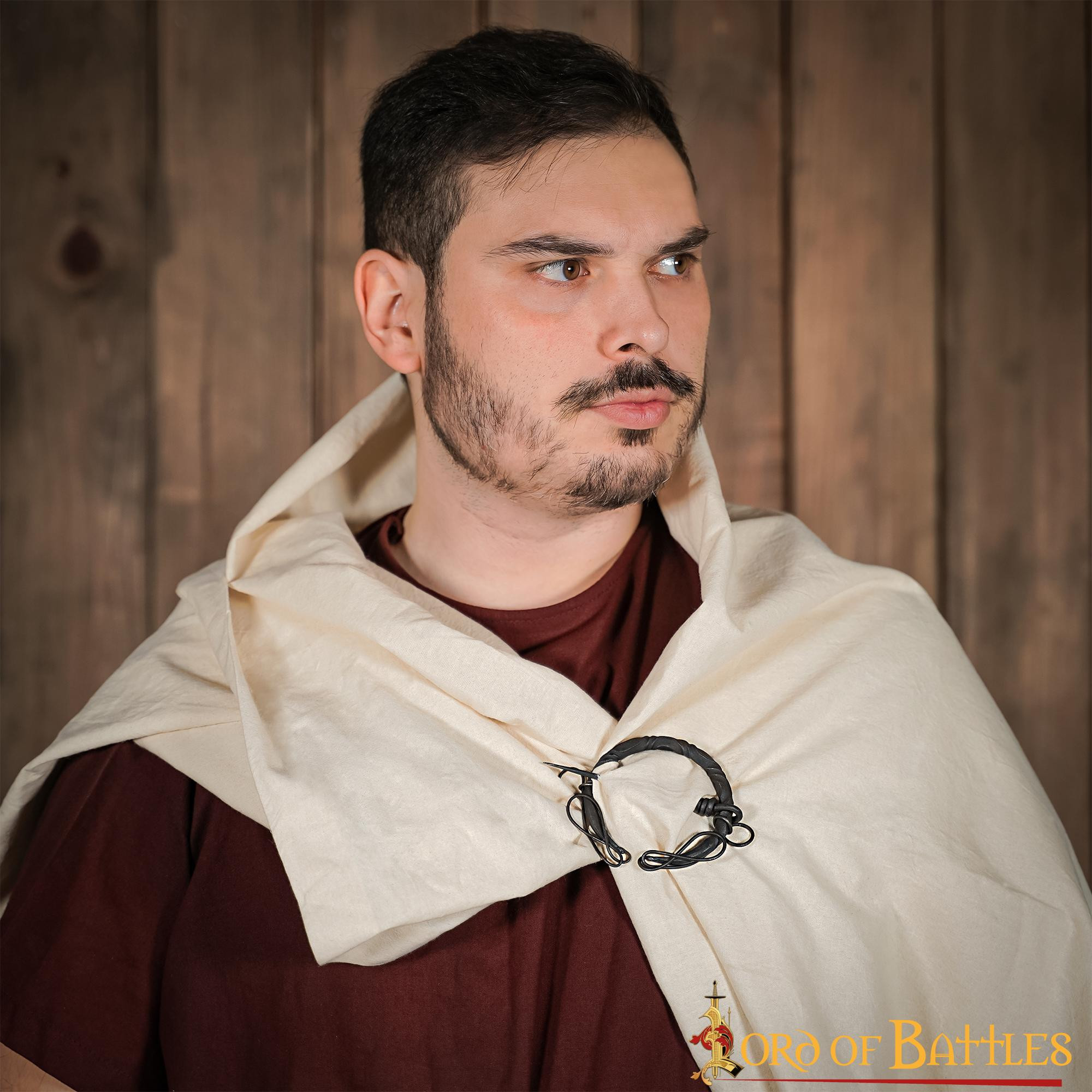 Denne keltiske smedejernsfibula med knuder er et kvalitetsprodukt fra det berømte Lord of Battles-mærke. Dens hovedmateriale er messing, hvilket giver den styrke og holdbarhed. Derudover sikrer dens bredde på 6,2 cm, at den er synlig og fremstår som et unikt og markant tilbehør.