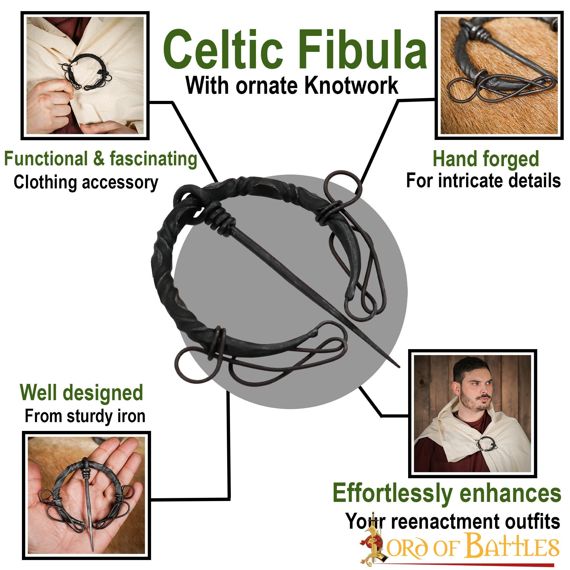 Hvis du leder efter en historisk, elegant og funktionel perle, skal du ikke lede længere. Få denne keltiske smedejernsfibula med knuder og tilføj et strejf af klasse til dit outfit!