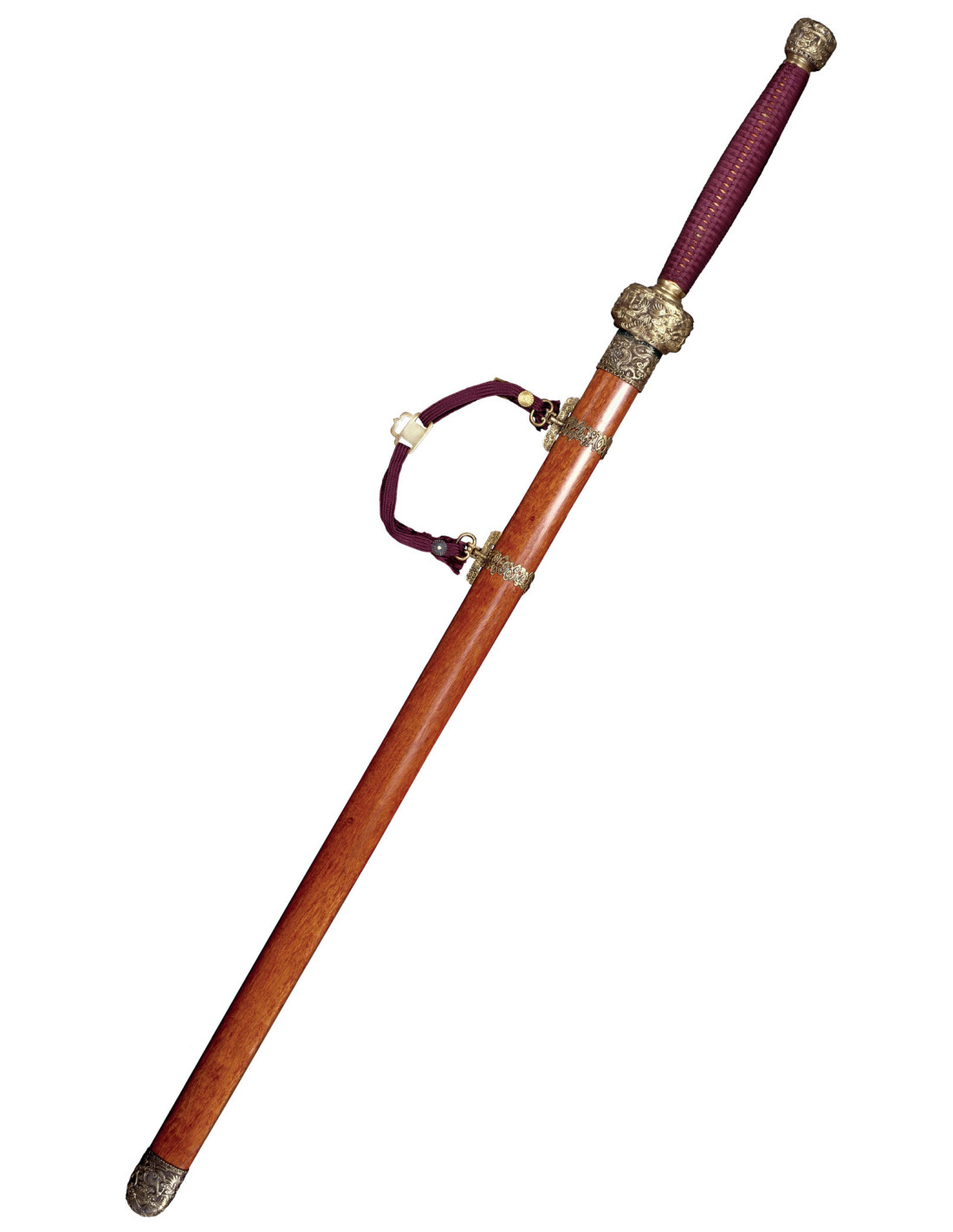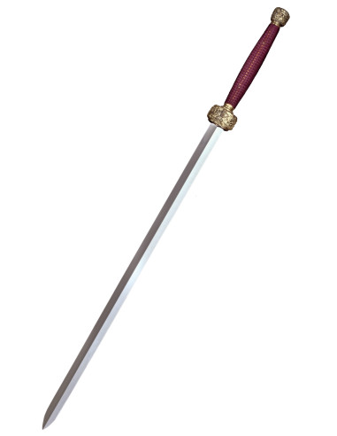 Gør dig klar til at føle dig som en legendarisk kriger med Two-Handed Sword Gim! Dette imponerende kinesiske sværd var udelukkende for de stærkeste krigere i det gamle Kina, nogle vejede over 6 pund! Dens lange klinge skar et bredt spektrum og kunne gennembore forsvaret af fjendens soldater bevæbnet med kortere og lettere våben. Forestil dig den fordel, du ville have på slagmarken!