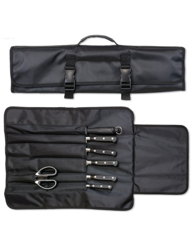 Udnyt den bekvemmelighed og sikkerhed, som Manta tilbyder til 6 professionelle knive og 1 tilbehør lavet af nylon. Hold dine knive beskyttet og klar til enhver kulinarisk udfordring. Gør dette tæppe til din uundværlige følgesvend i køkkenet!
