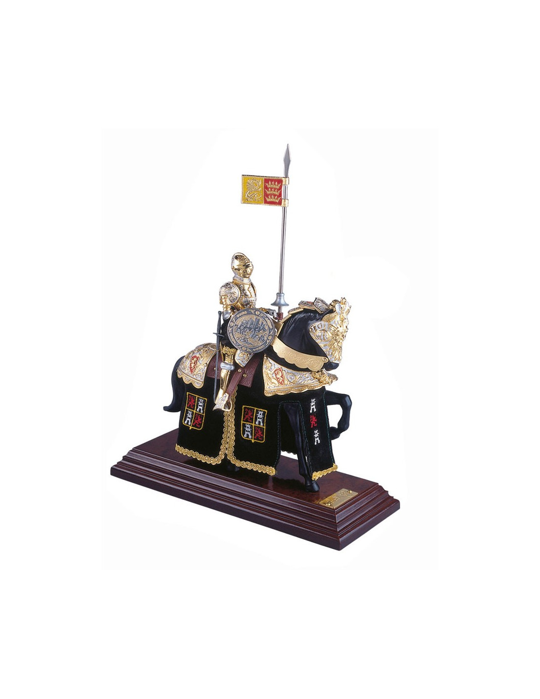 Leder du efter et unikt og autentisk stykke til at dekorere dit hjem eller tilføje et særligt touch til din samling? Led ikke længere, for vi har den perfekte løsning til dig. Vi præsenterer dig rustningen på hesteryg med en sort spansk hjelm, banner og nederdel.