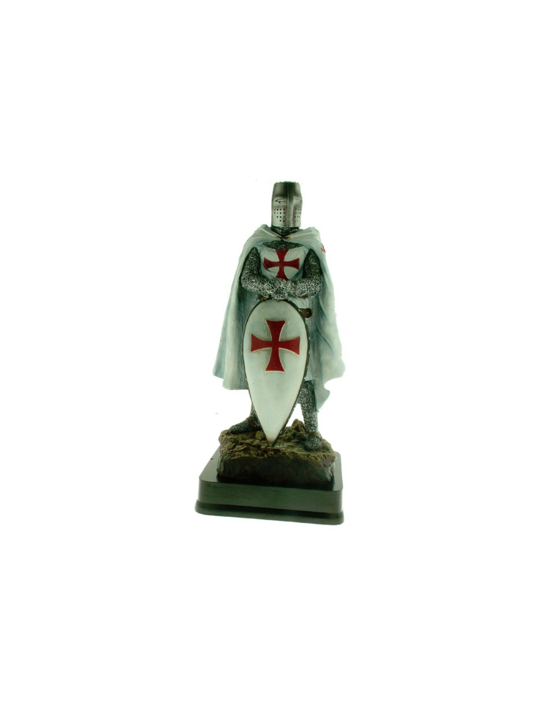 Denne miniature repræsenterer en modig tempelridder, et symbol på ære og tapperhed. Hans omhyggeligt detaljerede skjold viser Tempelherreordenens emblem, hvilket giver det et autentisk og unikt præg.