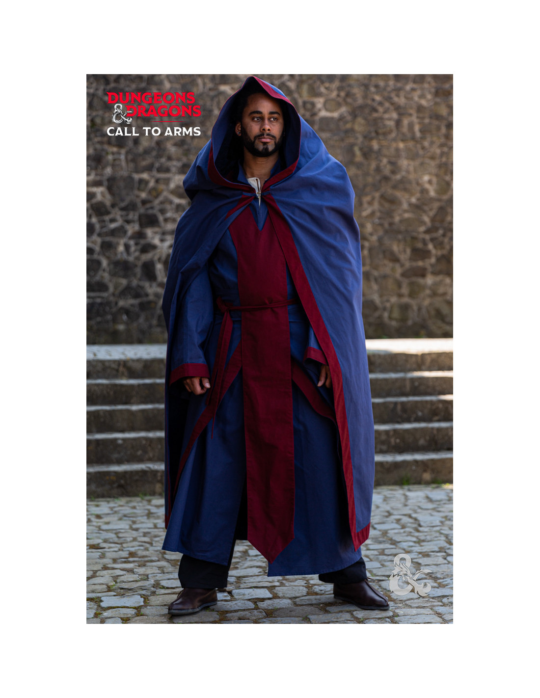 Pak dig ind i en kappe af mystik med vores middelalderlige troldmandskappe i en spændende mørkeblå-burgunder-kombination! Inspireret af verden af det populære D&D-rollespil giver denne kappe ikke kun en følelse af drama, men er også yderst funktionel.