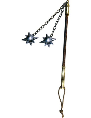 Forbered dig på at slå frygt ind i dine fjenders hjerter med vores middelalderspil med piggeløs bold og kæde! Dette kraftfulde middelalderlige våben har en smedejernskugle på cirka 5 centimeter i diameter forbundet med en robust jernkæde på cirka 25 centimeter (lavet af 5 mm tykt jern, med løkker på cirka 2,5 cm brede). Det cirka 61 centimeter lange...