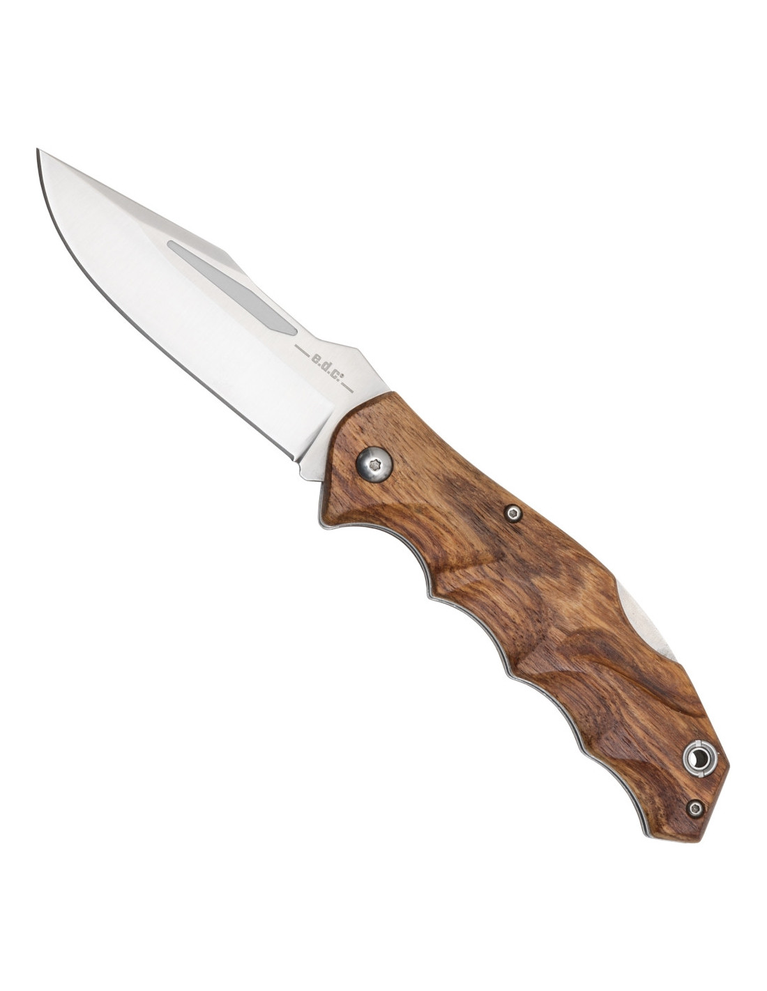- Padouk træhåndtag: Elegance i alle detaljer. Padouk træhåndtaget giver ikke kun et behageligt greb, men tilføjer også et strejf af sofistikering til dit daglige værktøj. En stilerklæring i lommen.