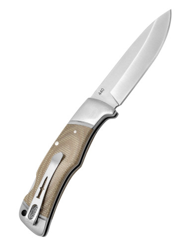 - 420 stålklinge med titanium: Klingen, med en længde på cirka 8,3 cm, er lavet af 420 rustfrit stål og er belagt med titanium for større holdbarhed og korrosionsbestandighed. Denne kombination giver en perfekt balance mellem kantskarphed, holdbarhed og korrosionsbestandighed, hvilket sikrer optimal ydeevne i alle dine udendørsaktiviteter.