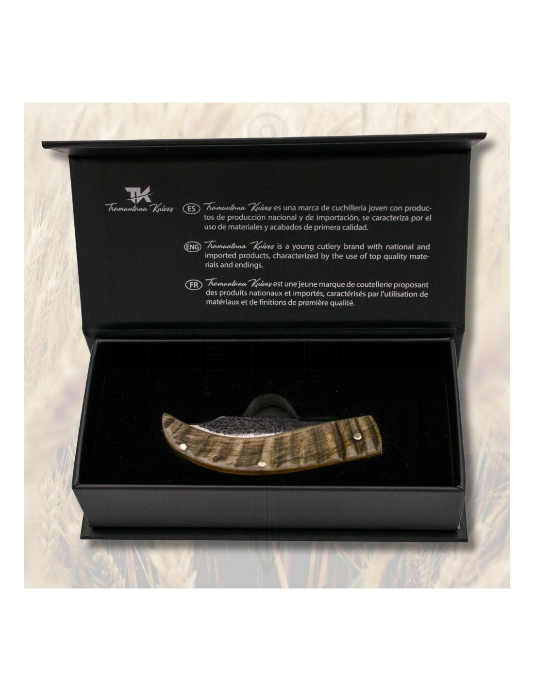 Denne kniv, mere end et simpelt tilbehør, er en erklæring om intentioner for eventyrere og dem, der værdsætter gode detaljer. Giv dine udendørs øjeblikke et strejf af sofistikering og effektivitet med dette fantastiske redskab fra Tramuntana Knives.