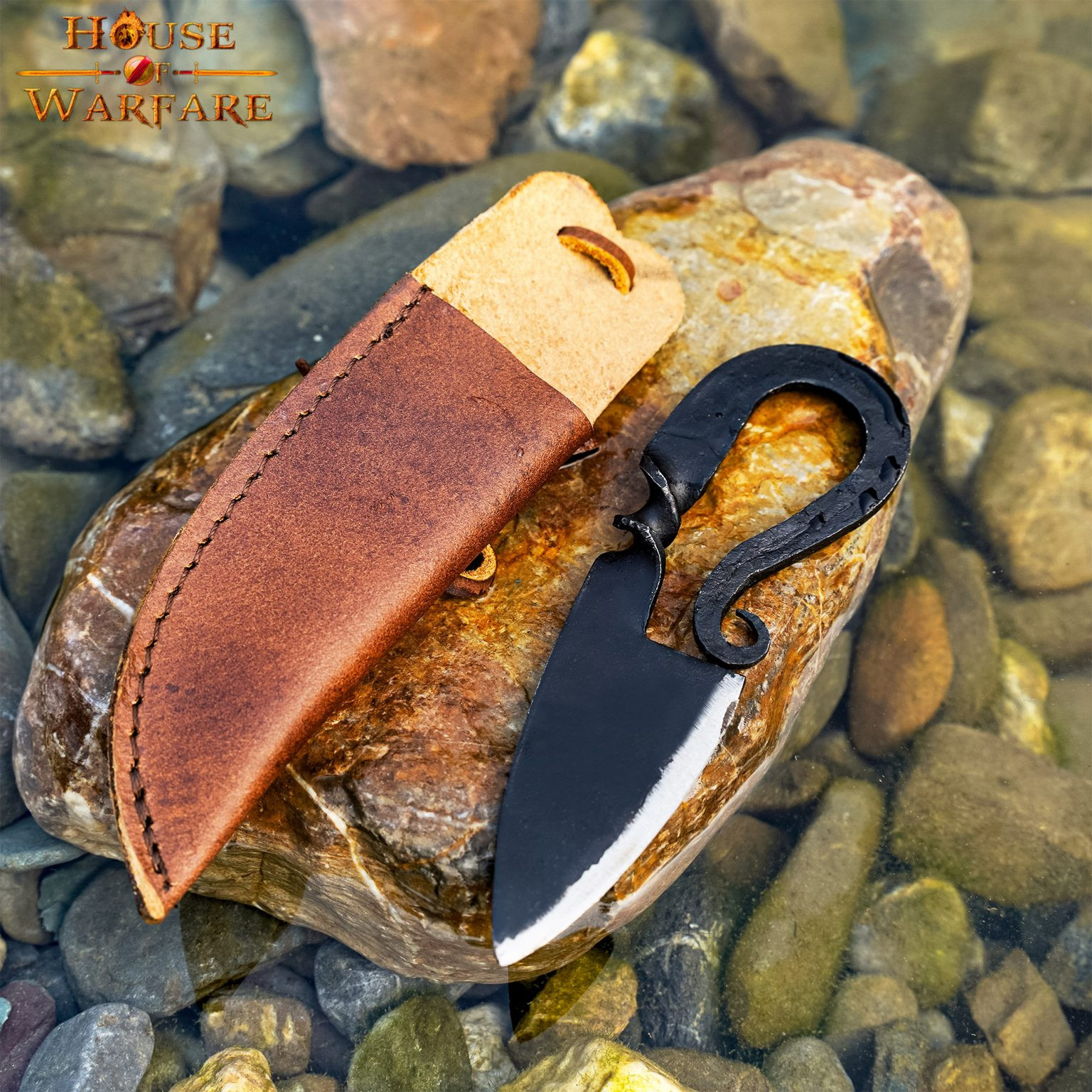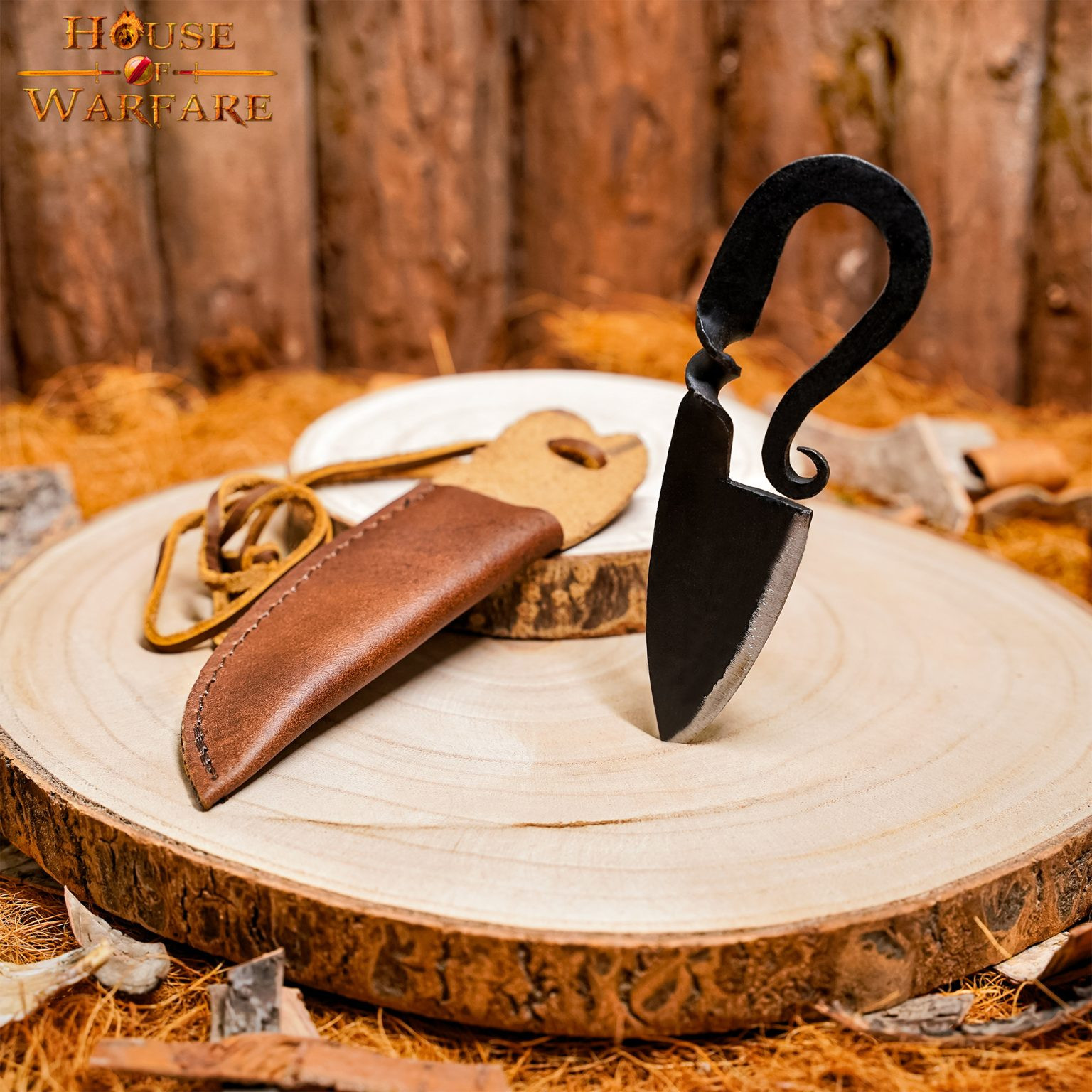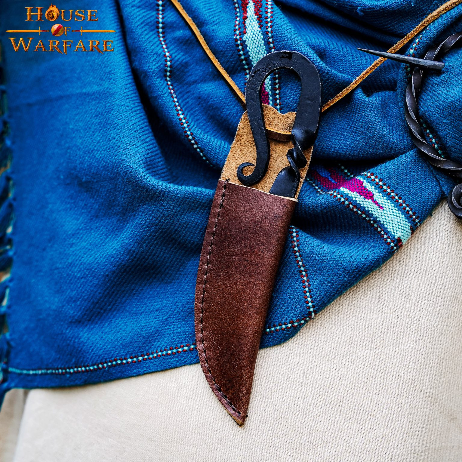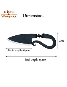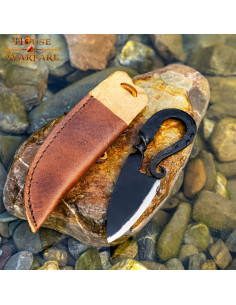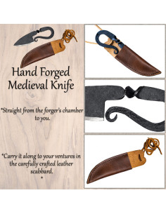 Udformet med præcision og dedikation, er denne kniv blevet håndsmedet af dygtige håndværkere. Hver detalje er blevet omhyggeligt bearbejdet for at fange essensen af middelaldertiden. Fra det gevindskårne håndtag til det skarpe blad vil du mærke ægtheden ved hver brug.