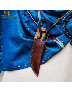 Denne middelalderkniv har en skede inkluderet, som giver dig mulighed for at bære den med dig sikkert og nemt. Uanset om du udstiller det som et dekorativt stykke i dit hjem eller bruger det i dine udendørsaktiviteter, vil du altid være klar til at møde de udfordringer, der kommer på din vej.