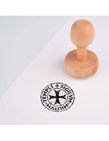 Forestil dig at kunne forsegle dine dokumenter, invitationer eller breve med emblemet og legenden om den berømte tempelridder, Templi-Sigilum-Militum. Dette stempel er lavet af bøgetræ af høj kvalitet, hvilket giver det et rustikt, autentisk udseende, som intet andet stempel kan tilbyde.