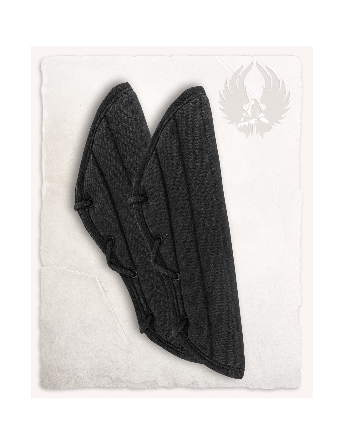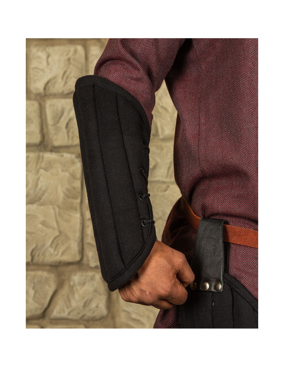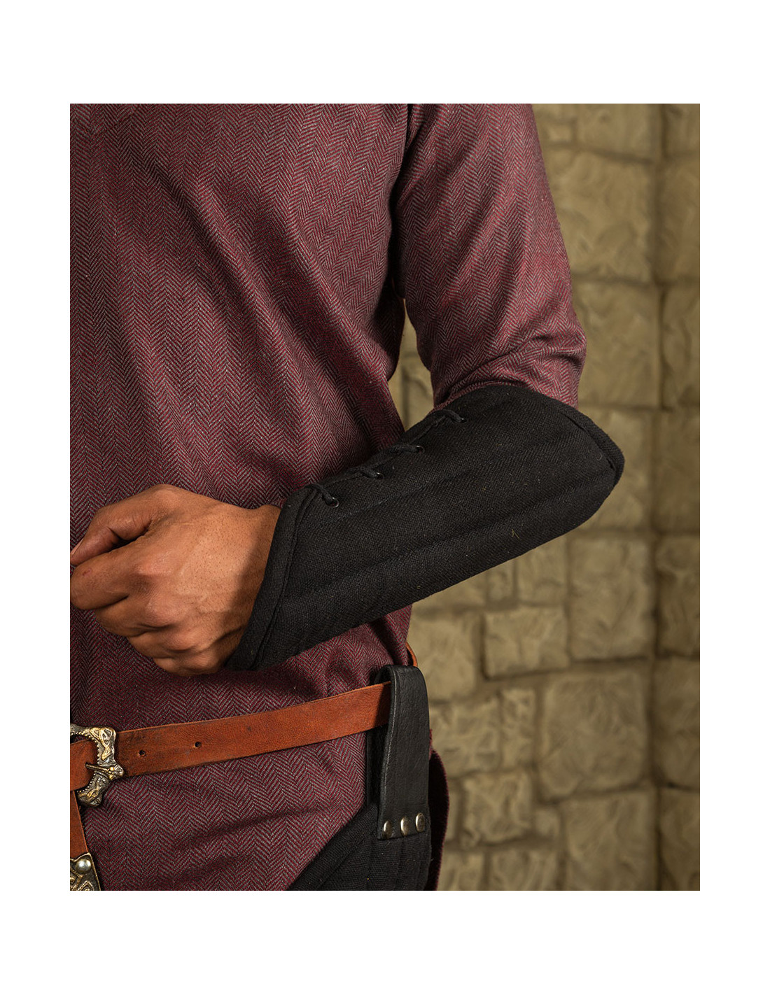 Oplev maksimal komfort med de polstrede middelalderarmbånd, Leopold model, i sort. Disse polstrede armbånd giver en uforlignelig oplevelse af komfort. Ved at bære dem under dine stålbøjler, vil du føle, at din rustning er meget lettere og mere behagelig, så du kan bevæge dig med lethed og smidighed i dine middelalderkampe.