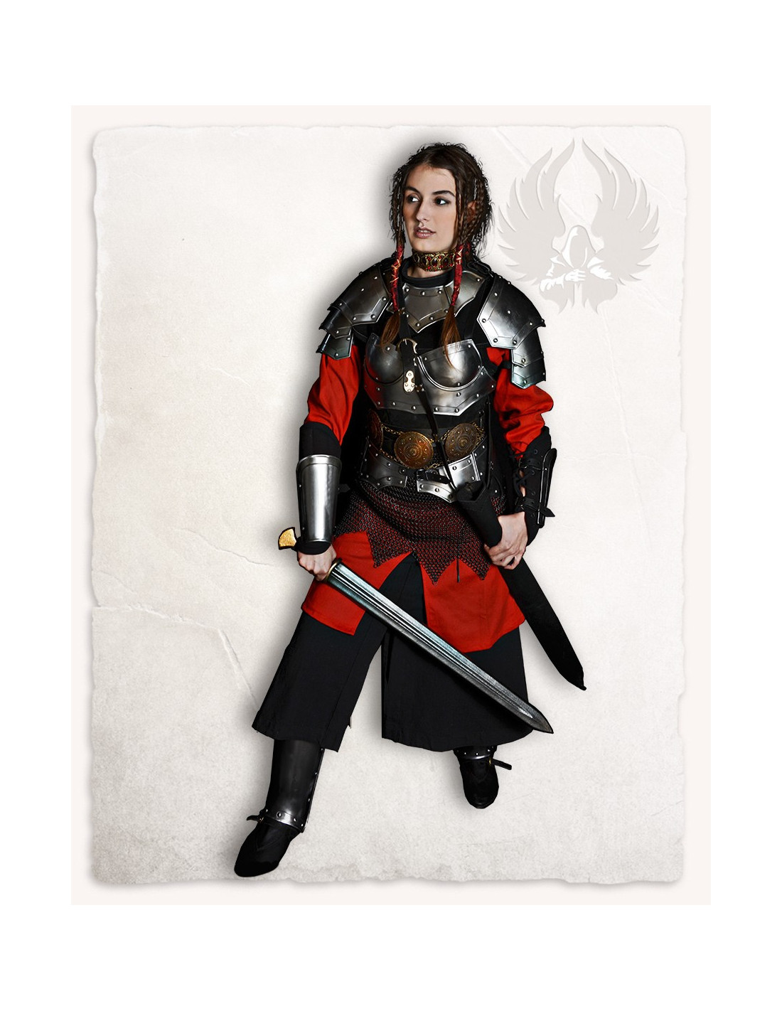 De polstrede middelalderarmbånd, Leopold-model, passer perfekt på din underarm takket være lædersnorene, der lukker dem. Dette giver en sikker og personlig pasform, så du undgår ubehag under dine eventyr. Plus, dets polstrede design sikrer en blød og hyggelig fornemmelse på din hud, mens den giver dig et ekstra lag af beskyttelse under dine episke kampe.
