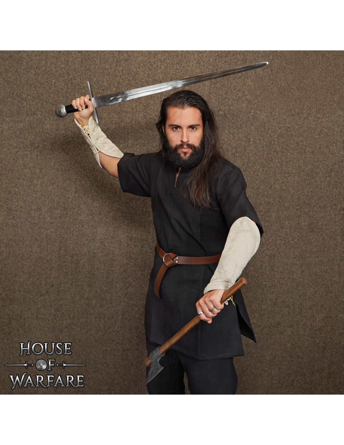 Hvert par er lavet med synlige sømme og omhyggeligt håndværk, hvilket garanterer et gennemtænkt udseende og en holdbarhed designet til hyppig brug i SCA, reenactment og kamptheater. Desuden integreres det teksturerede finish af stoffet og den cremede tone med en bred vifte af historiske og fantastiske kostumer.
