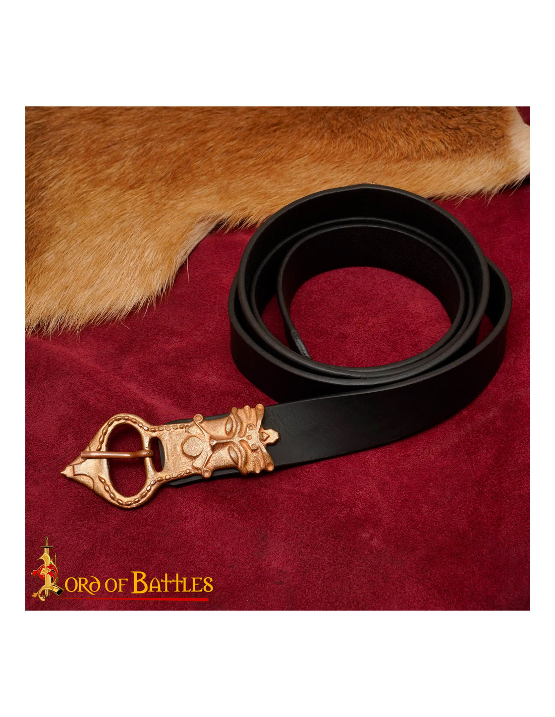 Forestil dig at tilføje et strejf af kongelighed og elegance til dit daglige outfit med et tilbehør, der ikke går ubemærket hen. Dette bælte med en imponerende sort bronze-konge-broche understøtter ikke kun dine bukser, men fremhæver også din stil med en aura af adel og unik karakter.