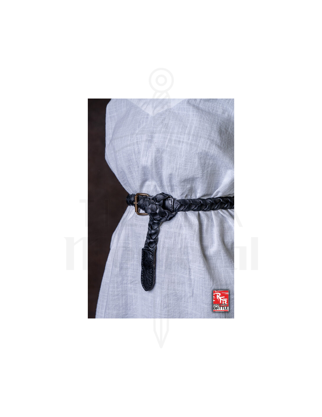 Opdag elegance og holdbarhed i et bælte, der kombinerer funktionalitet og middelalderstil. Dette flettede læderbælte i en fejlfri sort farve er ikke blot en uundværlig del af dit historisk inspirerede outfit, men tilbyder også stor alsidighed til alle typer karakterer og eventyr.