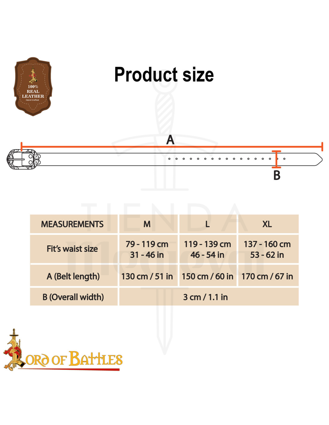 Perfekt til LARP-begivenheder, renæssancemesser, temafotoshoots eller for at give personlighed til dit daglige tøj, fungerer dette bælte som et alsidigt supplement, der forbedrer ethvert outfit. Med tiden udvikler læderet en naturlig patina, der gør hvert stykke unikt og reflekterer dine egne historier og rejser.