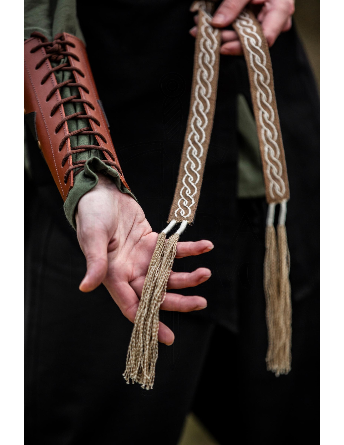 Det fletmønstrede design og de omhyggeligt udførte broderier giver en visuel finish, der ser ud til at fortælle en historie, mens de frynserede ender tilføjer et strejf af bevægelse og særpræg. Det er den slags accessory, der løfter en almindelig t-shirt eller afslutter et specielt outfit.