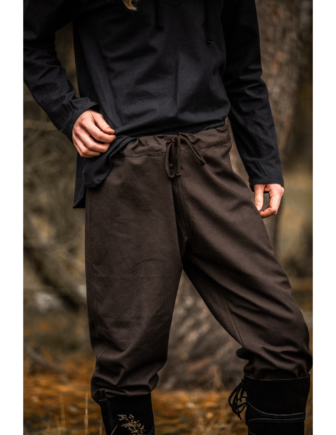 Er du klar til at gå med komfort og stil, som kun en ægte middelalderopdagelsesrejsende kan nyde? Disse mørkebrune bukser er designet til at følge dig i hvert skridt af dine eventyr, og kombinerer bevægelsesfrihed med et autentisk præg, der minder om tider fyldt med historie og legende.
