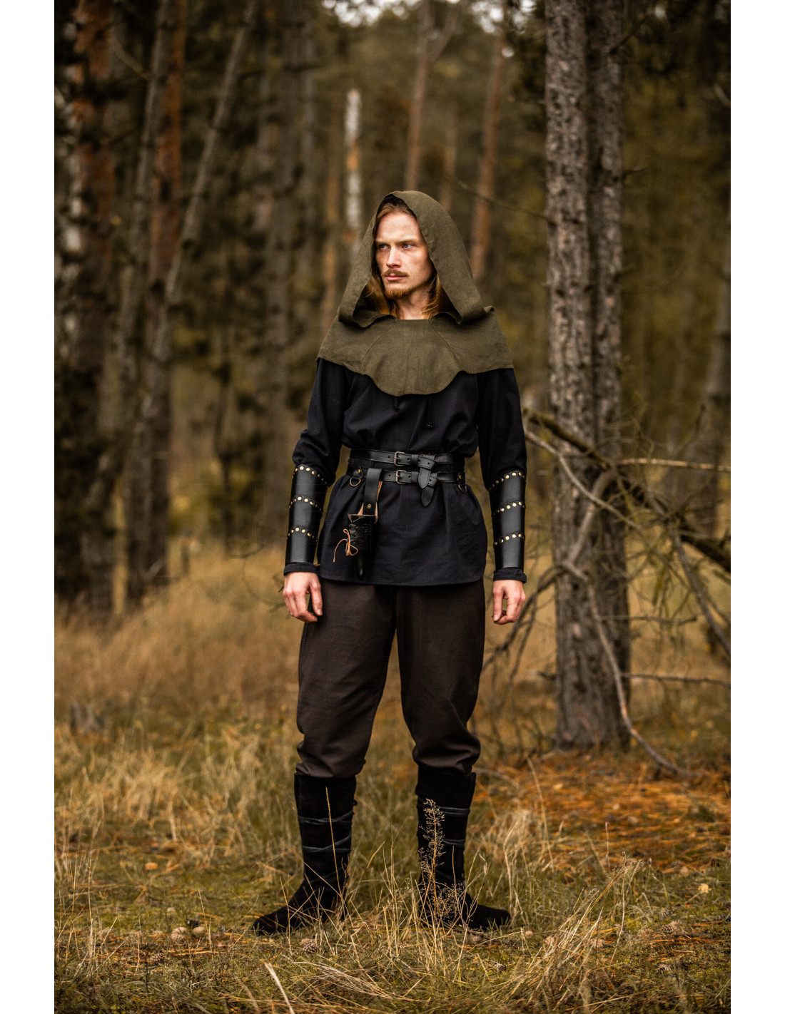 Deres løse, elastiske snit med justerbart snøre giver dig mulighed for at tilpasse bukserne til din krop uden at miste lethedsfølelsen, hvilket er ideelt til at gå på jordstier eller nyde lange udflugter udendørs uden begrænsninger. Derudover er det slidstærke og holdbare stof designet til at modstå hverdagens udfordringer, samtidig med at det bevarer et rustikt og autentisk udseende, der passer perfekt til ethvert middelalderligt eller afslappet outfit.