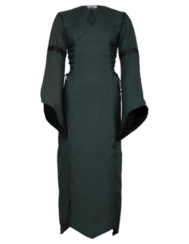 Inspirationen kommer fra serien **'Sorcery'**, og denne kjole er ikke kun tænkt til troldkvinder, men også til modeelskere, der ønsker et alsidigt og karakterfuldt stykke. Billedet viser en mørkegrøn nuance, der fanger essensen af naturen og mysteriet, suppleret med dekorative detaljer som sorte bånd på armene og syninger, der giver mulighed for en personlig tilpasning, så den passer til hver kvindes præferencer.