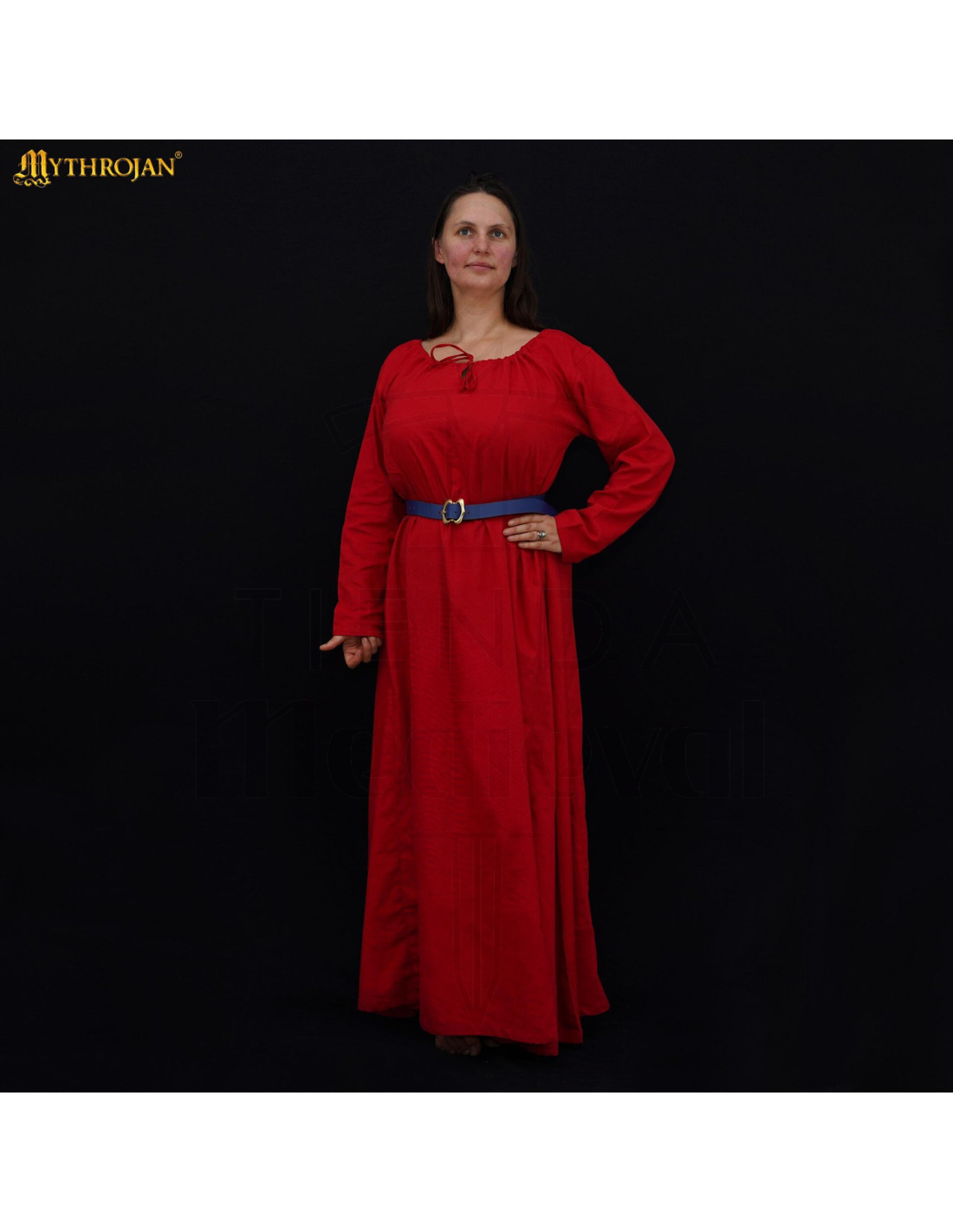 Langmiddelalderskjole i bomuld model Maiden, rød