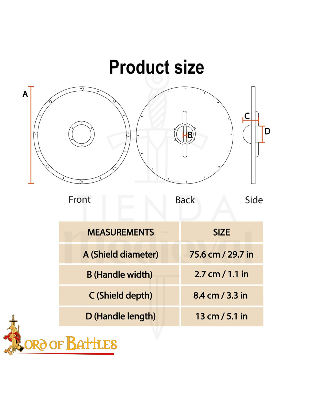 | A | Diameter på skjoldet | 75,6 cm |