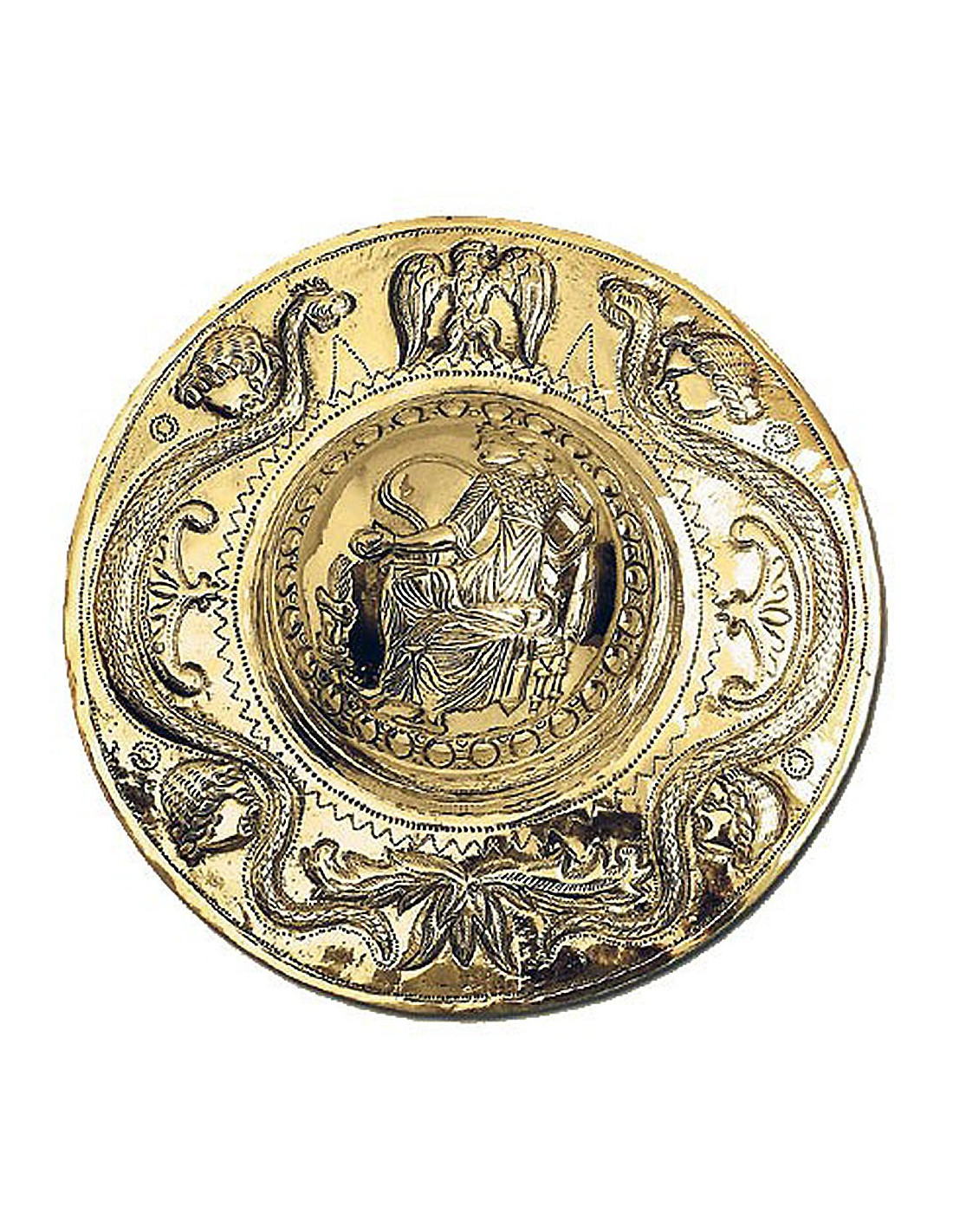 Beskyt din integritet under de mest episke kampe med den middelalderlige Buckler fra Guttman-samlingen. Lavet af messing og med en diameter på 24 cm, er denne buckler et gammelt våben, der vil transportere dig til de europæiske folks tider.