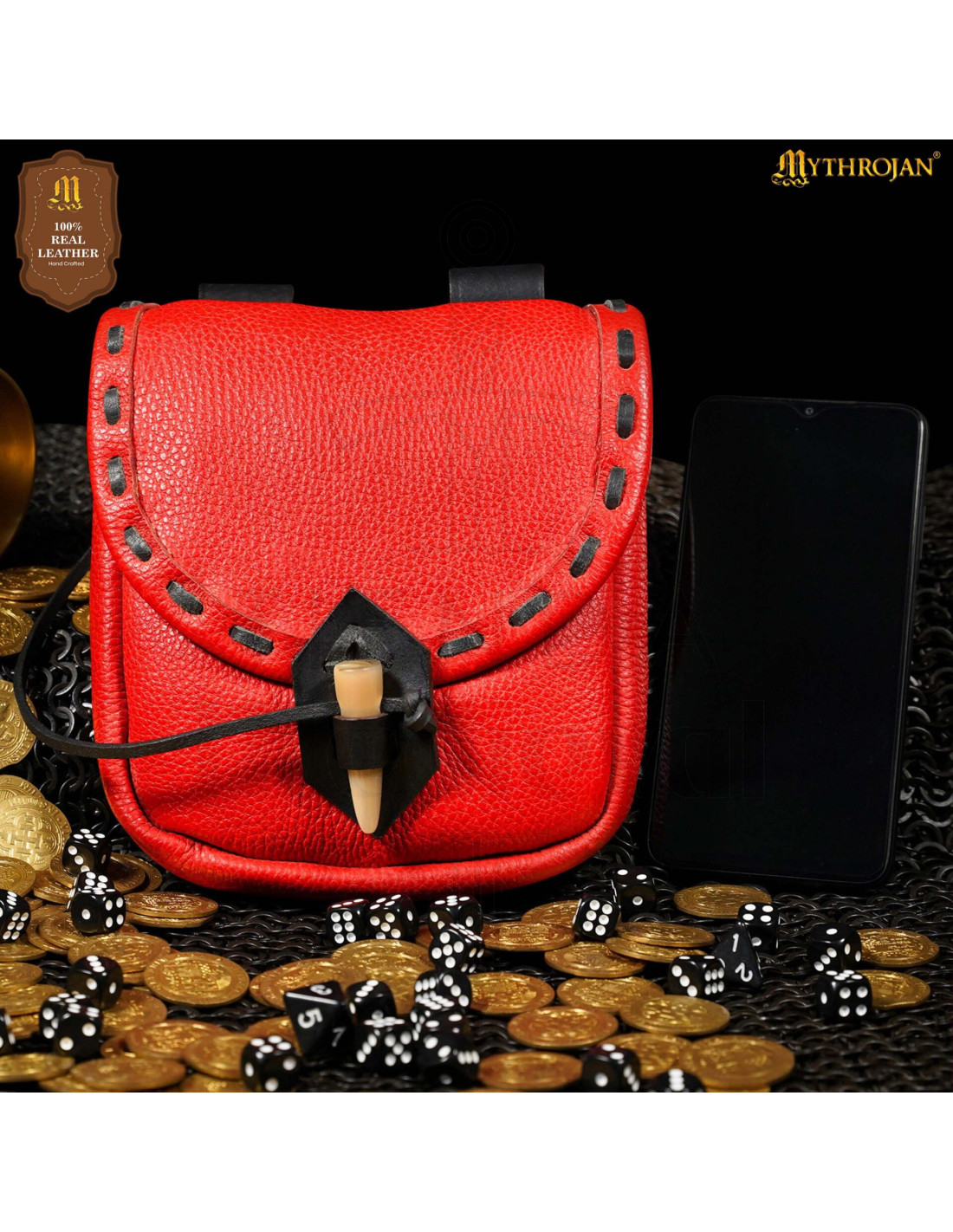 Forestil dig at bære et strejf af historie og eventyr med dig hver gang, du tager afsted, takket være denne elegante medievale læderpose i rød. Inspireret af de poser, som handlende, rejsende og eventyrere i Middelalderen brugte, kombinerer den autentisk stil med moderne funktionalitet.