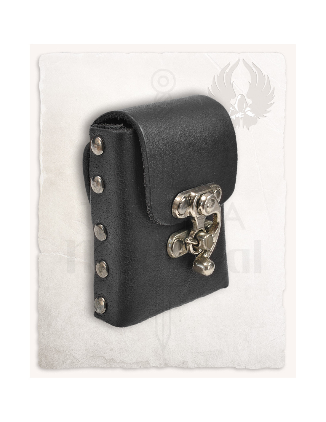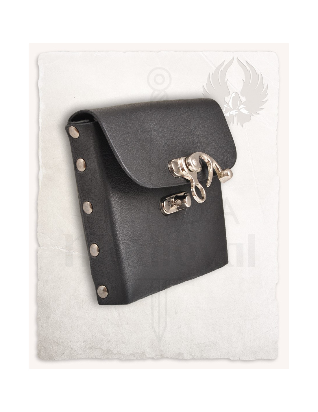 Materialet i læder kombineret med detaljer i sølvstål, såsom spænde og nagler, giver ikke kun stil, men også modstand over for konstant brug. Denne taske er perfekt til dem, der ønsker et robust tilbehør med et vintage præg, klar til at blive tilpasset enhver karakter eller fantasiscenario, larps, middelalderlige events eller cosplay.
