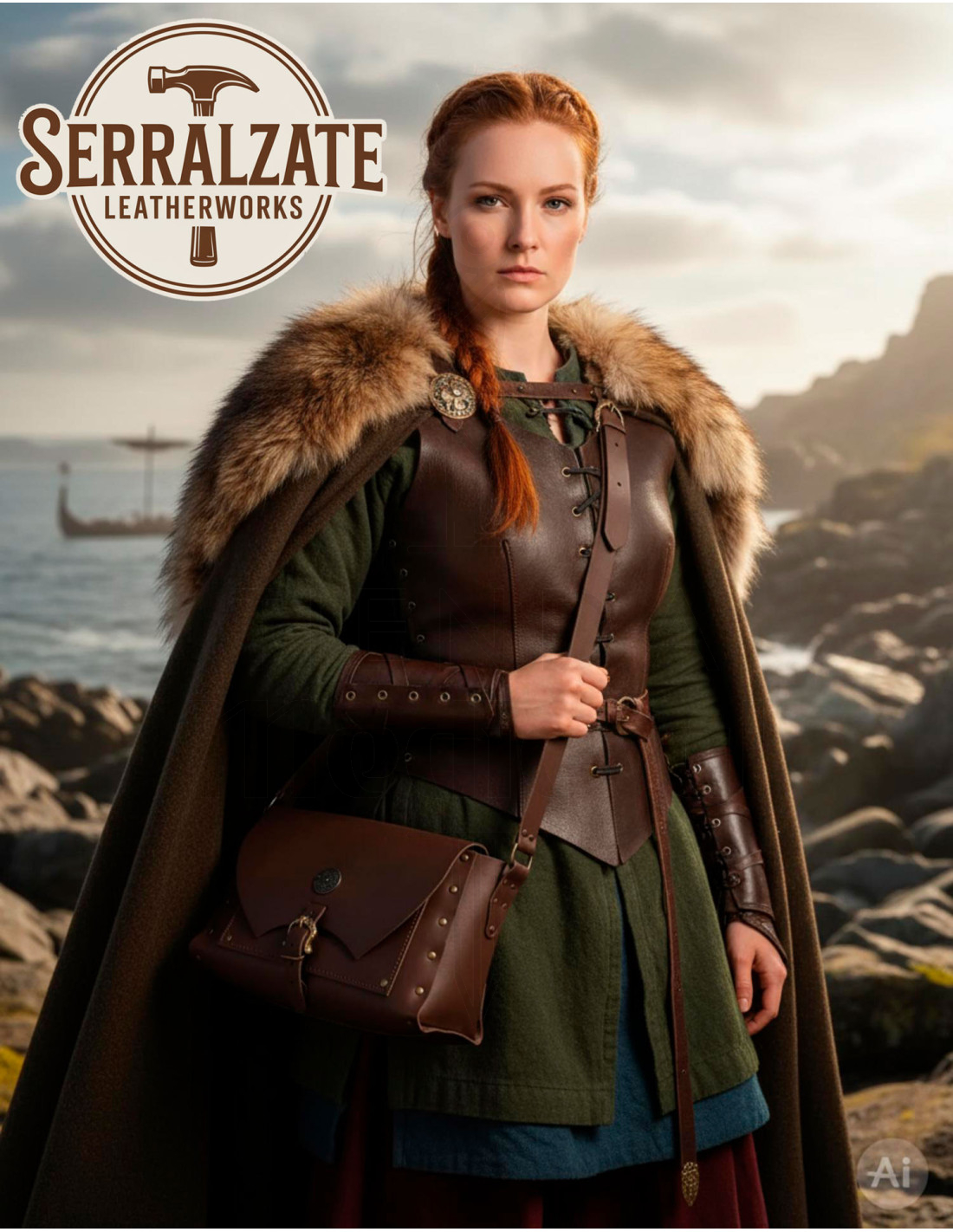 Dens skulderrem-design giver komfortabel og praktisk bæring, med rigelig plads til at opbevare dine essentielle genstande uden at gå på kompromis med stilen. Takket være dens Zamak-spænde lukning forbliver dine ejendele sikre hele tiden, samtidig med at den tilføjer et autentisk middelalderligt præg. Udvalget af naturligt læder, der kræver enkel vedligeholdelse, sikrer, at din taske bevarer sin karakter og holdbarhed gennem alle eventyr.
