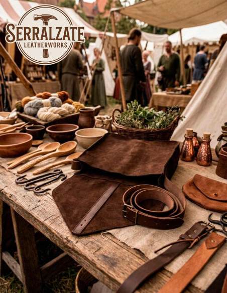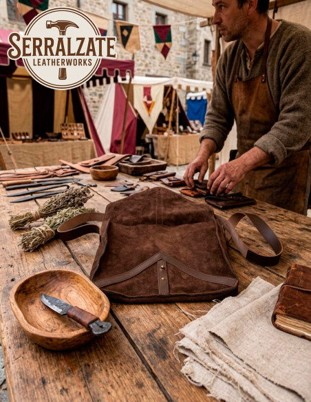 Forespørgsel om Håndlavet skuldertaske til rekreation og LARP, brunt læder