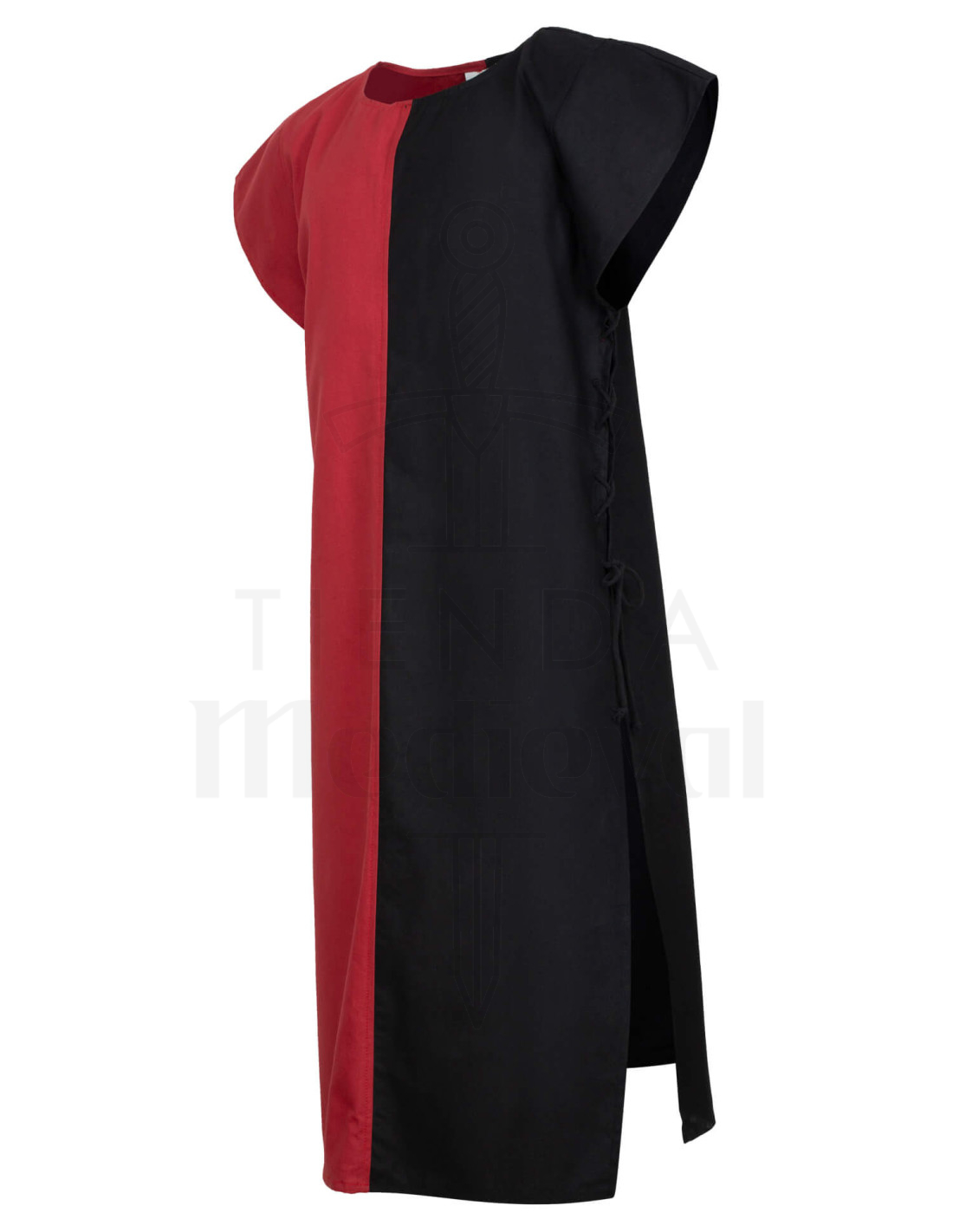 Fremstillet af slidstærkt 100% bomuldssejl, sikrer det holdbarhed og komfort ved hver brug. Dets metaløjer giver ikke kun et robust udseende, men gør det også nemt at justere siderne med snore, hvilket gør det muligt at tilpasse det perfekt til enhver figur, uanset om det bæres over rustning eller let tøj. Derudover giver det brede snit og korte ærmer fri bevægelighed, ideelt til kampe, demonstrationer eller kulturelle arrangementer.
