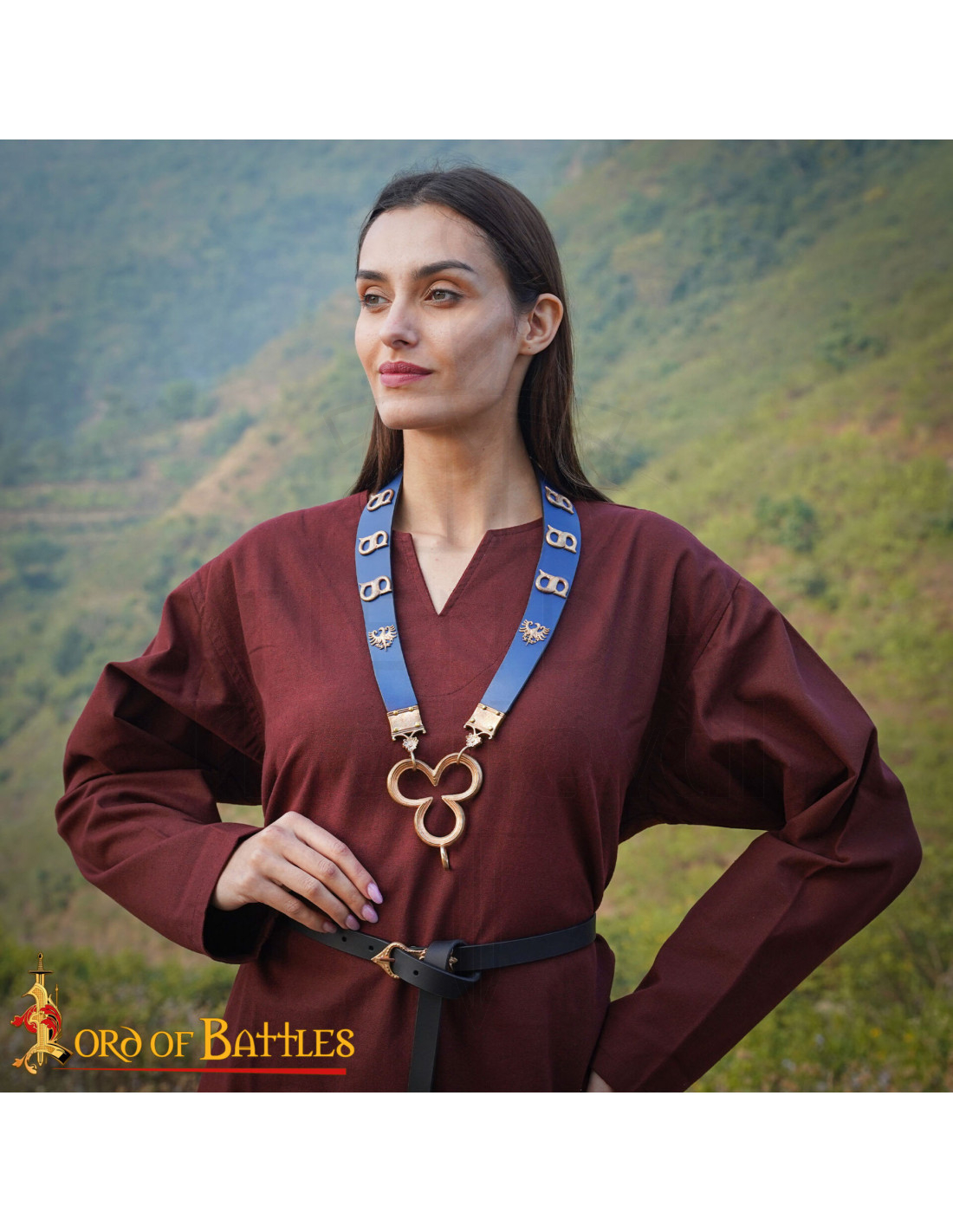 Kløvermotivet, som findes i middelalderkunst, symboliserede tro, held og beskyttelse, samt henviste til Treenigheden i religiøse sammenhænge, hvilket tilføjer en symbolsk lag for dem, der søger mere end blot et æstetisk tilbehør. Denne historiske baggrund gør det til et meningsfuldt stykke for samlere, reenactors og middelalderelskere.