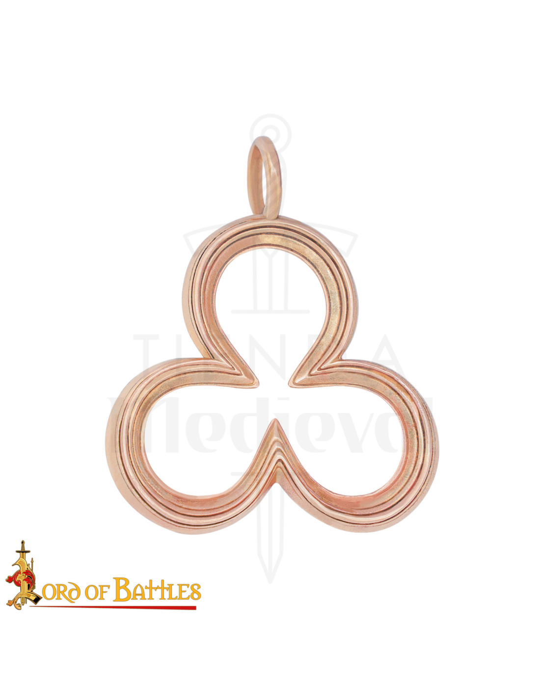 Fremstillet med den traditionelle voksstøbningsmetode, har vedhænget en solid overflade og en naturlig finish, der tilføjer historisk karakter uden at gå på kompromis med den nødvendige holdbarhed til dagligt brug eller live-events. De forhøjede linjer følger silhuetten af kløveren, hvilket skaber en dybdeeffekt, der fanger lyset og fremhæver dens gyldne kobbertone – perfekt til at matche med kapper, tidsperioder eller moderne stilarter.