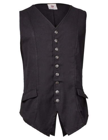 Vil du føle dig som en ægte eventyrer på de syv have? Denne medieval bomuldsvest i sort er din bedste allierede for at opnå det. Inspireret af kollektionen 'Seven Seas', har den en klassisk pasform og detaljer foran med knapper, der ligner sølv, hvilket tilføjer det elegante og robuste præg, du har brug for for at erobre kysten eller leve dine egne pirat-eventyr. De praktiske åbninger i siderne giver komfort og let bevægelse, mens de forreste skrå lommer giver dig mulighed for at opbevare dine vigtigste genstande uden besvær. Lacing på bagsiden justerer pasformen perfekt, så vesten altid sidder som skræddersyet, uanset om du er en ædel kaptajn eller en snu smugler.
