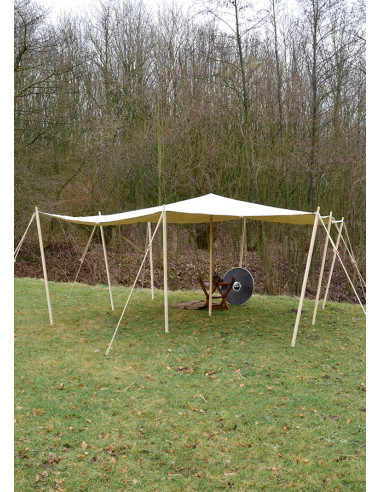 Men dette fortelt er ikke kun modstandsdygtigt, det er også alsidigt. Med sine dimensioner på 2 x 4 meter er den stor nok til at blive brugt som ly for sol eller regn på dine campingture, LARP (Live Action Rollespil) arrangementer eller endda i din have derhjemme. Derudover gør dets firesidede design det perfekt til at forbinde flere middelaldertelte sammen, hvilket skaber et beskyttet og tørt rum til at nyde dine udendørsaktiviteter.
