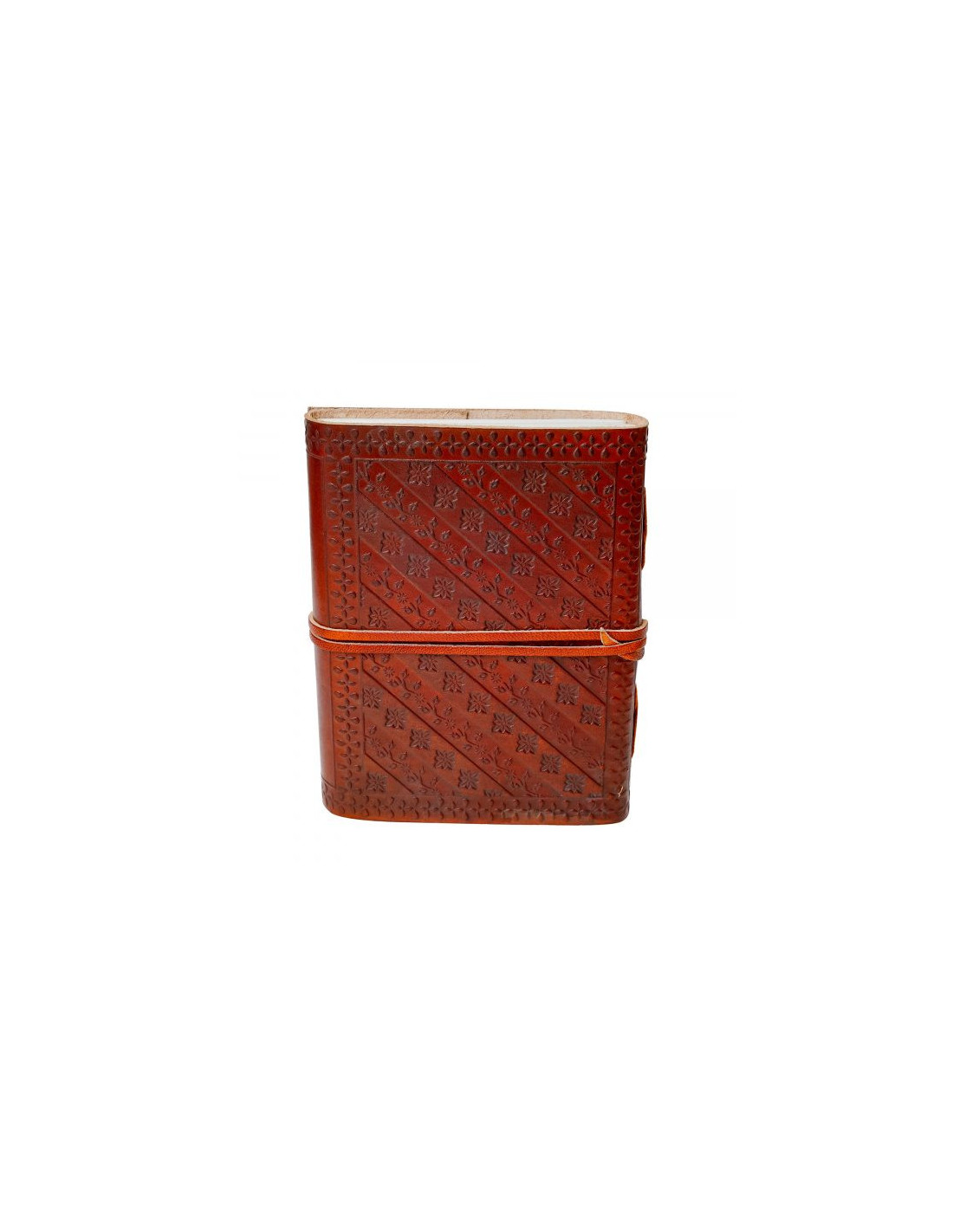 Forestil dig et hjørne, hvor hver tanke får plads, hvor teksturen af papiret og følelsen af læder inviterer dig til at skrive med ro og stil.Dette notesbog forvandler skrivning til en sensorisk oplevelse takket være det mørkebrune læderomslag med et præget design, der blander geometriske og blomstermotiver, hvilket giver hver side en værdig ramme til dine...
