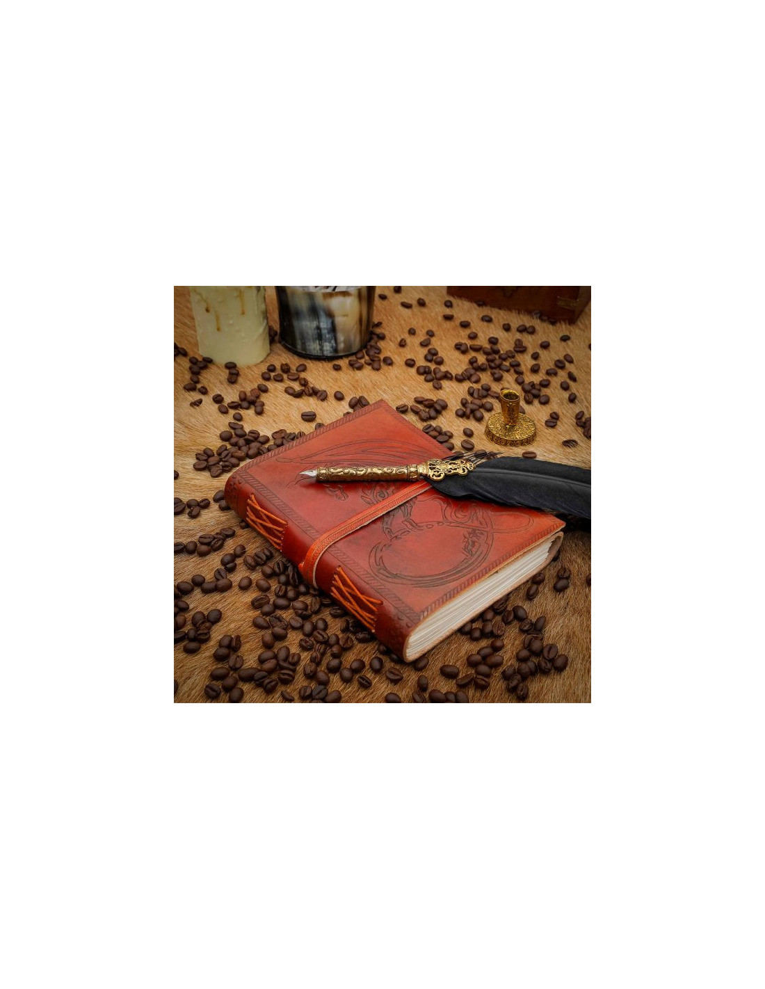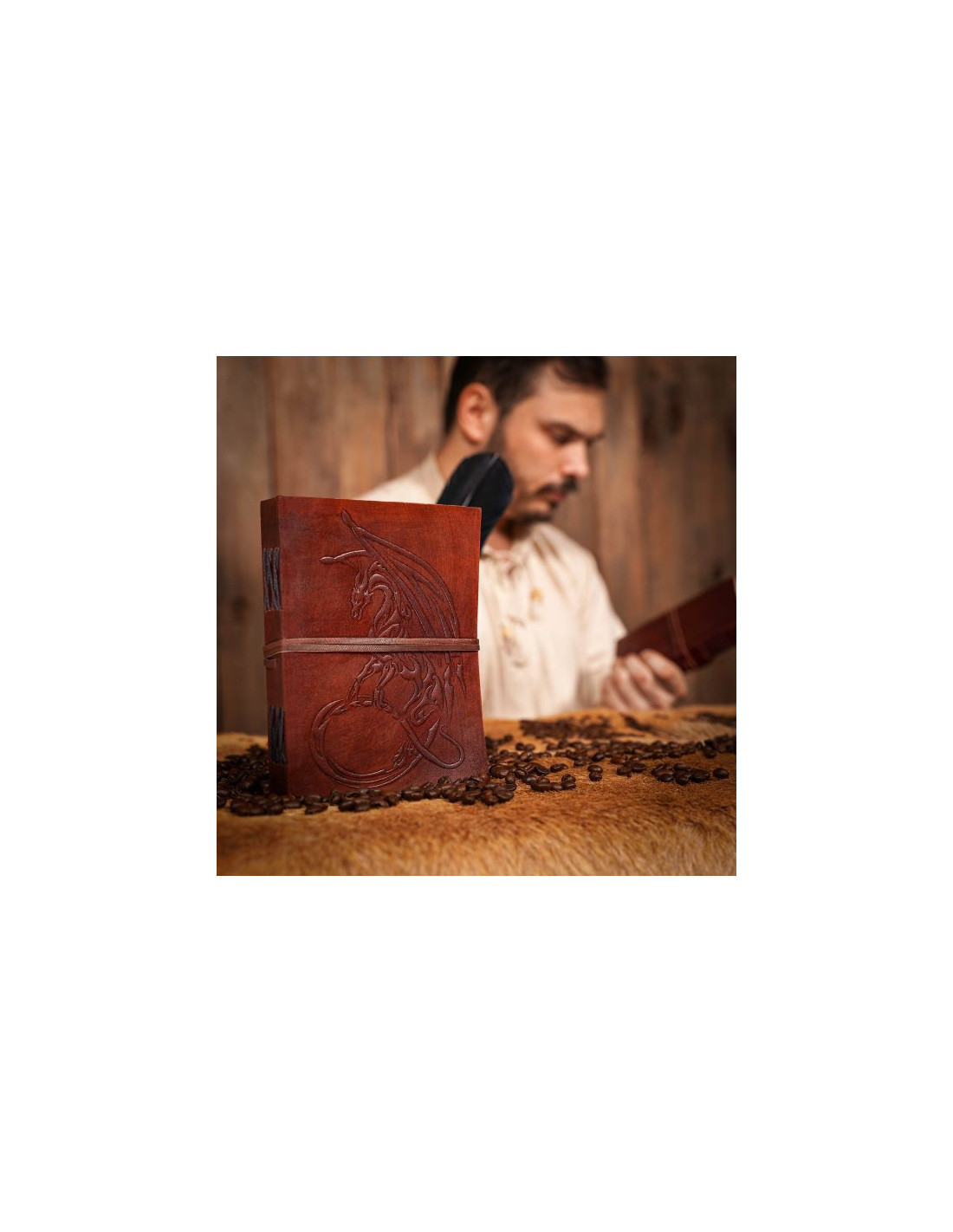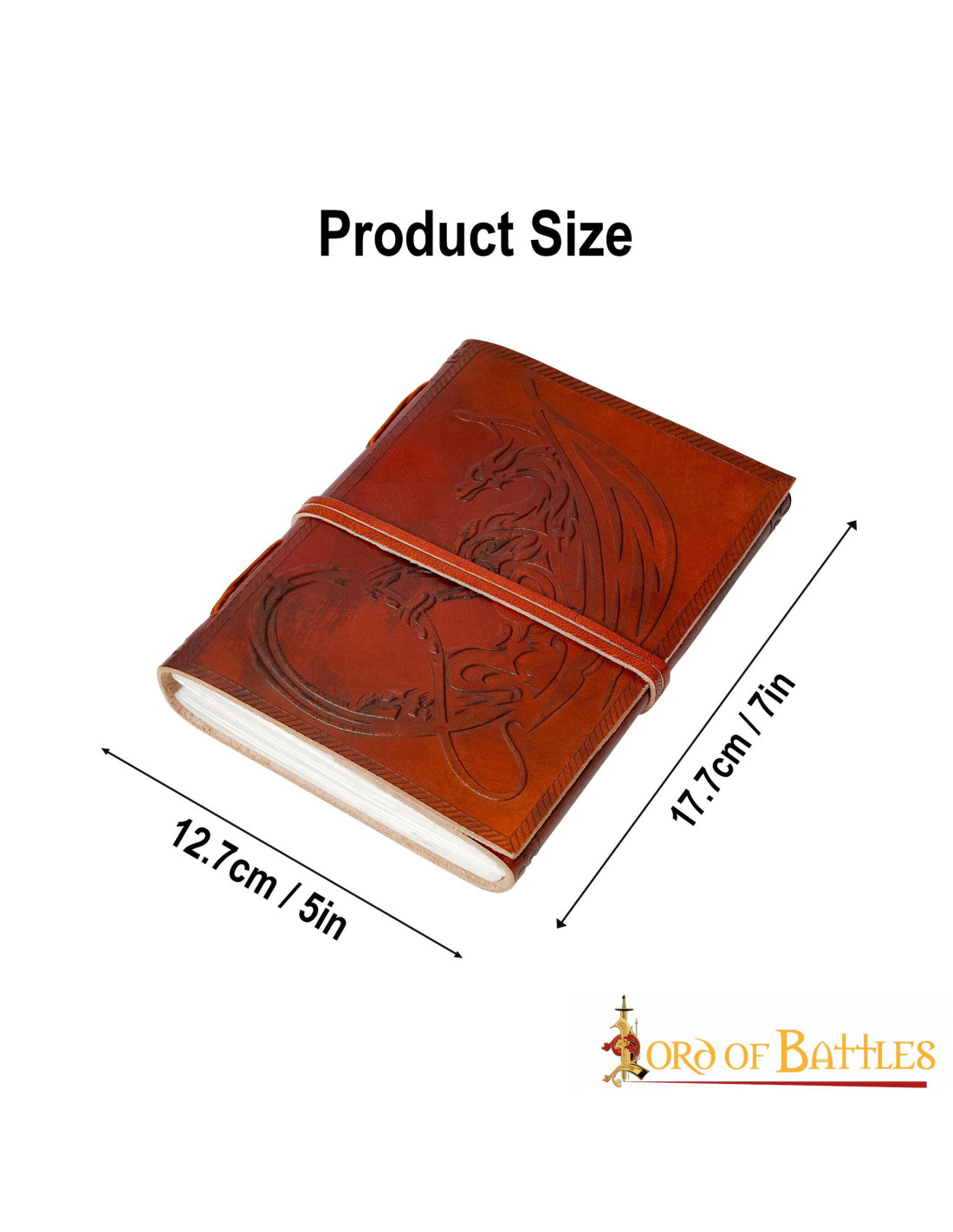 Denne dagbog, der måler 5" bred og 7" høj, er perfekt til at tage med dig overalt og skrive dine tanker, ideer eller refleksioner ned. Siderne af høj kvalitet er tykke og stærke, hvilket gør dem perfekte til at holde forskellige typer kuglepenne og blyanter. Hvis du leder efter en journal, der er stilfuld, holdbar og funktionel, er Celtic Dragon Genuine Leather Journal et fremragende valg.