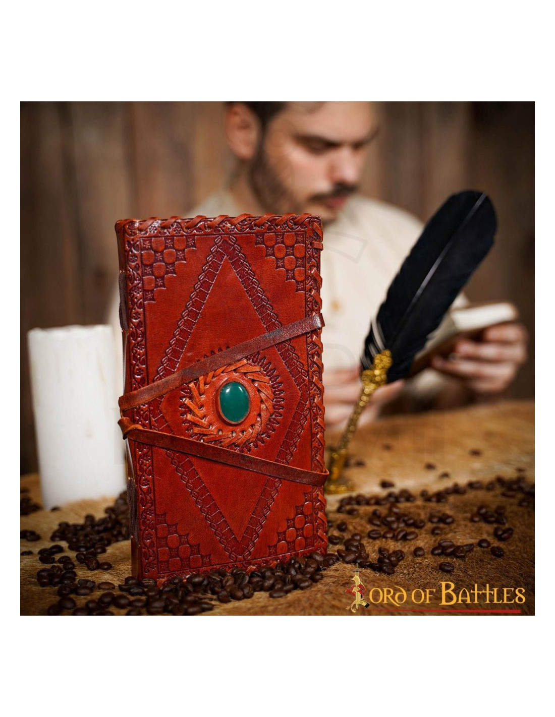 Er du på udkig efter en perfekt følgesvend til dine dybeste tanker og din grænseløse kreativitet? Denne medievale dagbog med læder- og stenomslag i en livlig rød farve er meget mere end blot en notesbog; det er et kunstværk, der indkapsler historie og elegance i hver side.