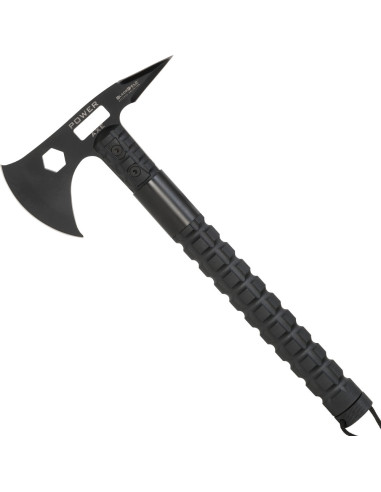 - Kompakte mål for nem transport: Med en samlet længde på 375 mm og en vægt på 680 g har Power Axe kompakte mål, der gør den nem at transportere. Det er et vigtigt værktøj til udendørsaktiviteter, camping og taktiske situationer. Inkluderer overlevelseskit og kompas.