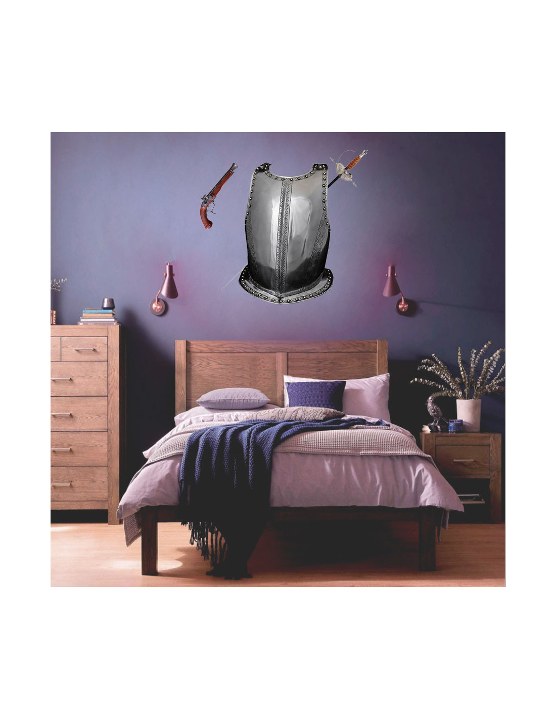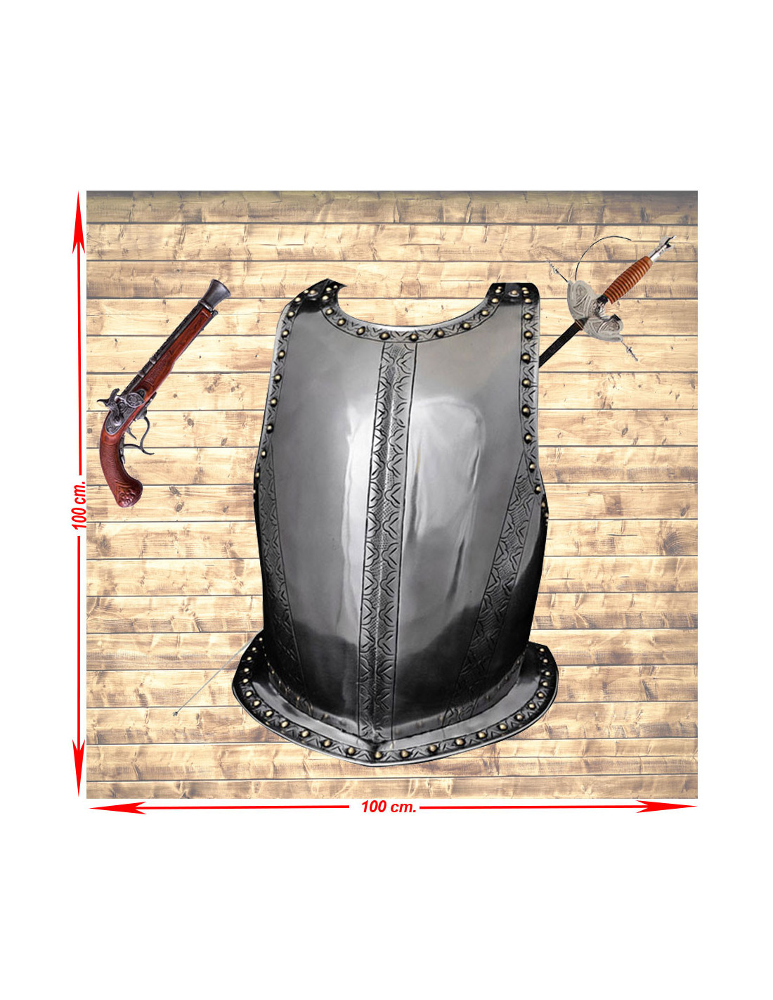 Klassisk panoply lavet af Castilla y Leóns våbenskjold i malet aluminium, med gammel dekoration. Indeholder 2 middelalderlige hofsværd præsenteret i et kors; Det handler om Lancelots og Ivanhoes sværd, der er fastgjort bag skjoldet ved hjælp af en støtte. Skjoldet indeholder en kæde, der tjener, så det kan hænges på væggen. Ideel til at dekorere ethvert...