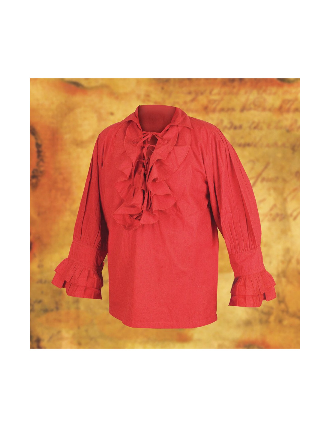 Denne Pirat-skjorte er perfekt til dem, der ønsker at skille sig ud ved enhver begivenhed med pirat-tema, middelaldermesser eller historiske genopførelser. Dens brede og elegante design suppleres af snørebåndene foran og ved manchetterne, hvilket giver et karakteristisk og unikt touch.