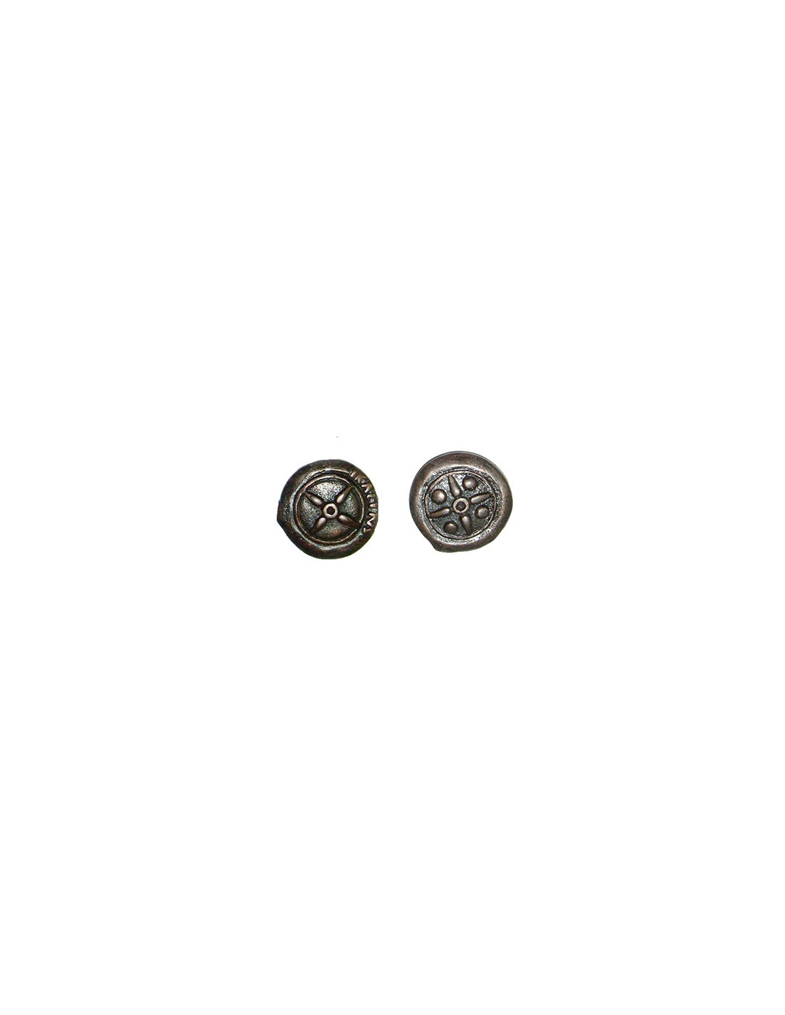 Dette utrolige stykke er lavet af metal med en antik finish, hvilket giver det et autentisk look og emmer af historie. Takket være udtømmende historisk forskning er det lykkedes os at gengive Triënte-mønten fra Gubbio-mønten (III-I f.Kr.).