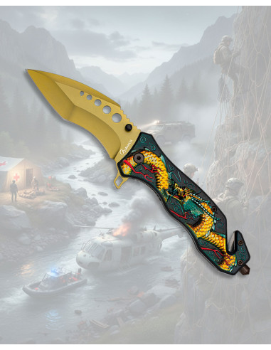 Hvis du værdsætter at være forberedt og ønsker at købe Albainox taktik redningskniv med guldrage, får du et stykke, der forener et imponerende design og nyttige løsninger, tænkt til øjeblikke hvor hastighed og pålidelighed tæller.