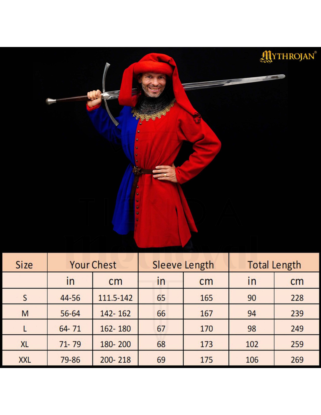 Derudover afspejler denne frakke den vigtige rolle, som livrées spillede i den sene middelalder, hvor uniformer hjalp med tydeligt at skelne mellem sider og øgede tilstedeværelsen på slagmarken. Perfekt til at genskabe historisk præcise franske bueskytter eller militsenheder fra ikoniske perioder som Roseskrigen, samt til at skille sig ud til danse og tidsarrangementer.
