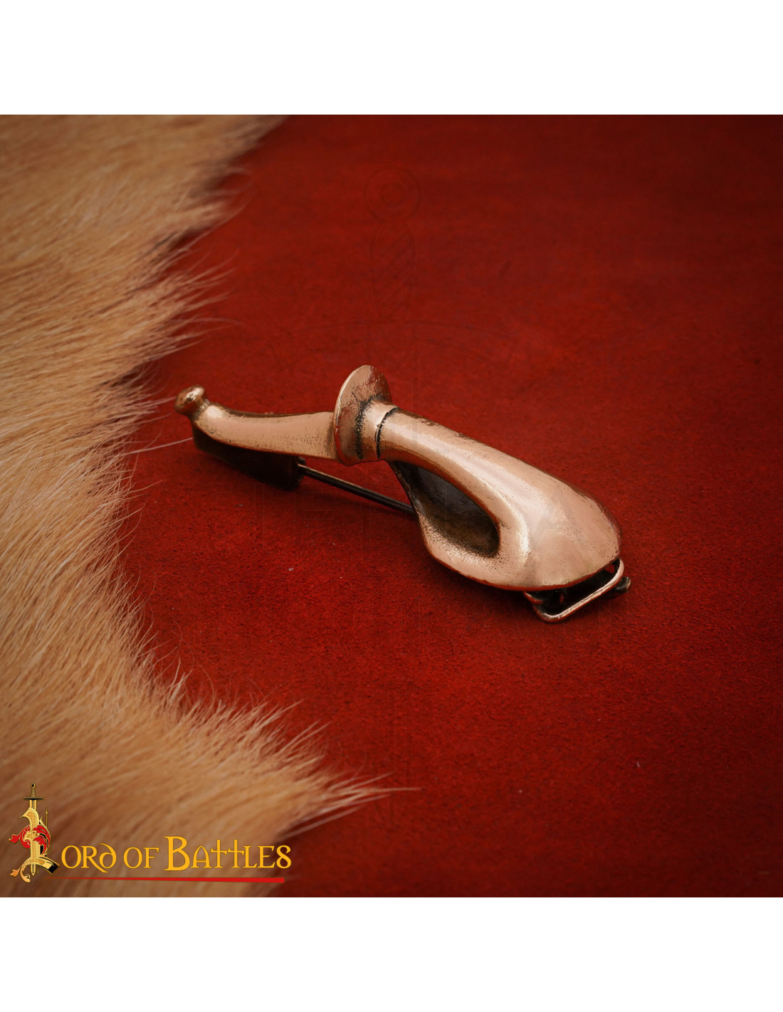 Trofast rekreation af en model brugt af officerer i imperiet, designet til dem, der ønsker et tilbehør, der giver karakter til ceremoniområder, historiske rekonstruktionstunicaer, eller samlerudstillinger. Overfladen i antik bronze og de små slidte områder fremhæver det gamle udseende, hvilket får fibelen til at se ud som om, den har rejst fra provinser som Pannonia eller Germania til din hånd.