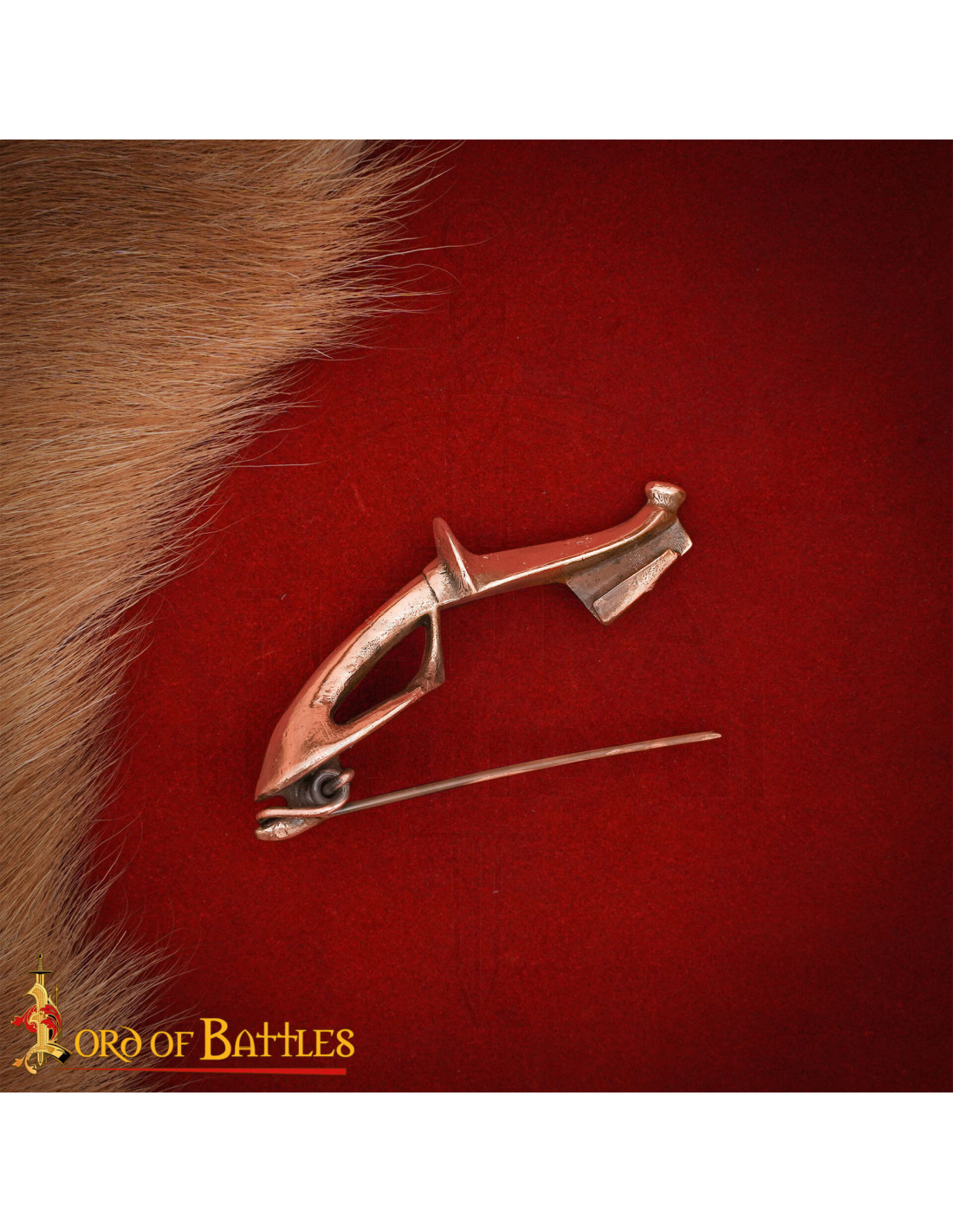 Fremstillet ved hjælp af den traditionelle lost wax-teknik, beholder hver del små variationer, der gør den unik, og oversætter den håndværksmæssige proces til en åndfuld finish, ideel til dem, der værdsætter historisk meningsfulde replikater. Spændet har en håndsmidd nål i jern, hvilket sikrer en fast og pålidelig lukning, perfekt til at sikre tunge tekstiler uden at gå på kompromis med æstetikken.
