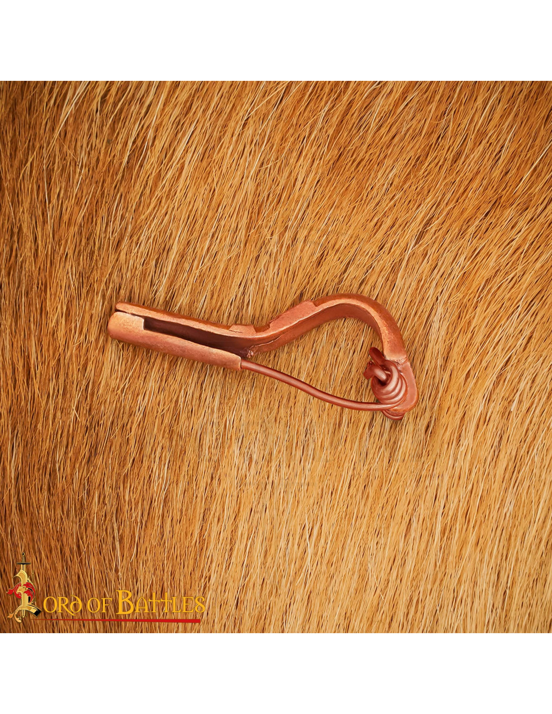 Denne del bringer til live den praktiske og stolte gestus, og tilbyder en lukning, der ikke giver sig for bevægelse, lange marcher eller tunge kapper. Designet i vinkel, arvet fra fundene fra det 3. århundrede, sikrer stoffet uden at glide, hvilket gør den til det perfekte valg for dem, der søger autenticitet og ydeevne i historisk påklædning.
