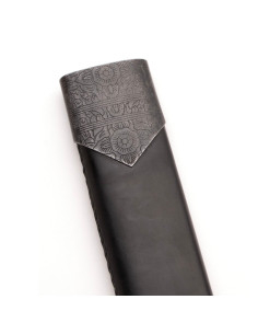 Den matchende slire er ikke bare et simpelt tilbehør, men tilbyder komfort tænkt til sikker transport, med bæltestop, der muliggør stabil transport og en forstærket spids, der beskytter både bladet og dit udstyr. Detaljerne på nakken og slirelåg i stål, indgraveret med et traditionelt blomstermønster, tilfører diskret elegance, et nik til våbnets geografiske og historiske oprindelse.