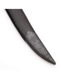 Denne sværd genopliver den militære version af Kindjal, et kampprøvet design, der blev tilpasset for at tjene styrkerne indtil slutningen af det 20. århundrede, og tilbyder en følelse af kommando og tillid, når du holder det. Den mørke finish reducerer reflekser under alle forhold, mens den skarpe spids og det centrale spor giver lethed og hurtig reaktion ved hver bevægelse, hvilket muliggør præcise manøvrer uden at ofre robusthed.